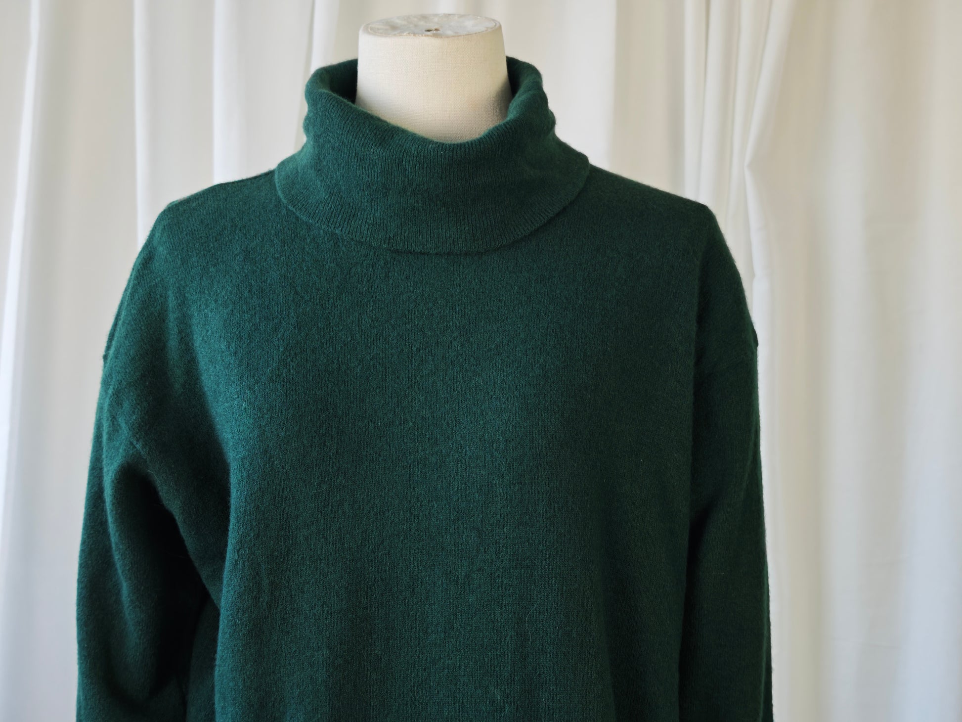 Vintage dark green turtleneck jumper made with angora wool. Good condition , the colour is slightly different in real life. (more of a dark moss colour)