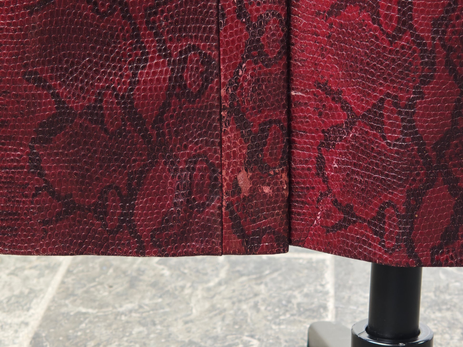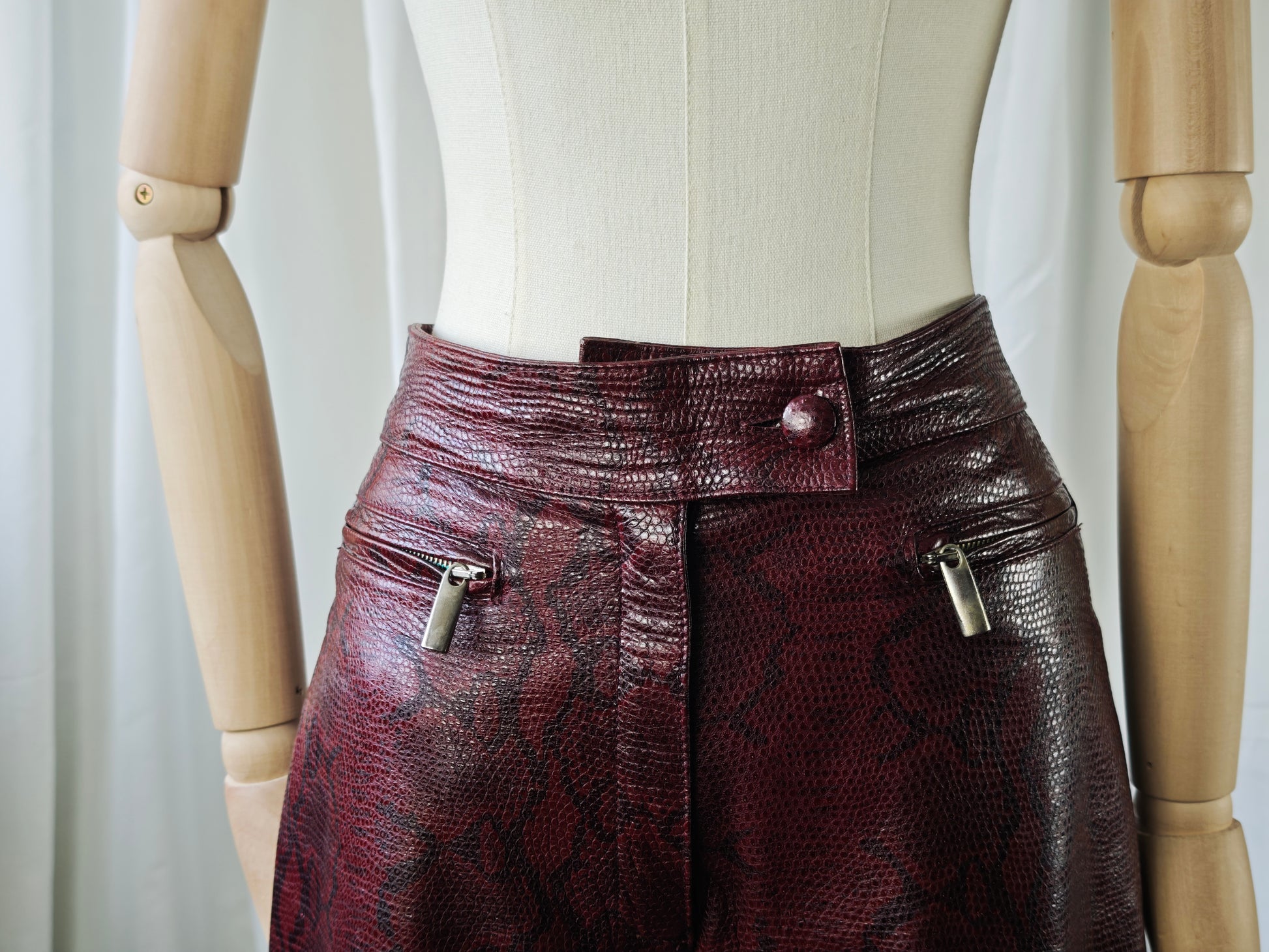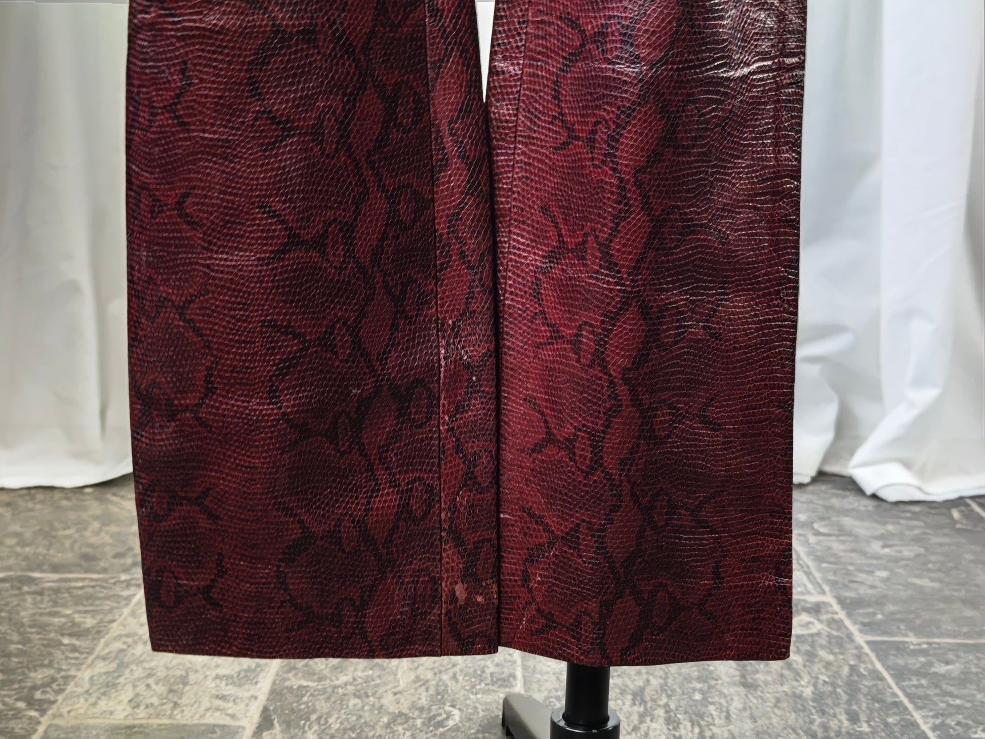 Vintage 90s burgundy snake print trousers straight leg/ slightly flared. Good condition but some minor damage on the hem. (see picture)