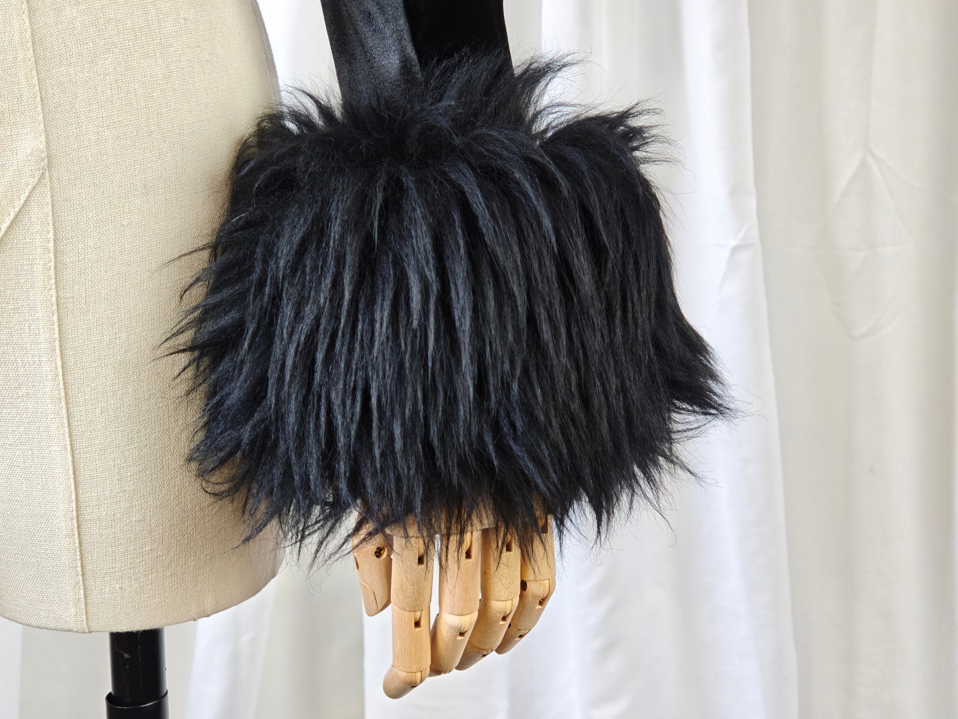 Vintage 2000's rare collectible catwalk collection london corset top. Black velvet fabric and faux fur details. Size tag says one size, but fits best sizes XS up to a small L