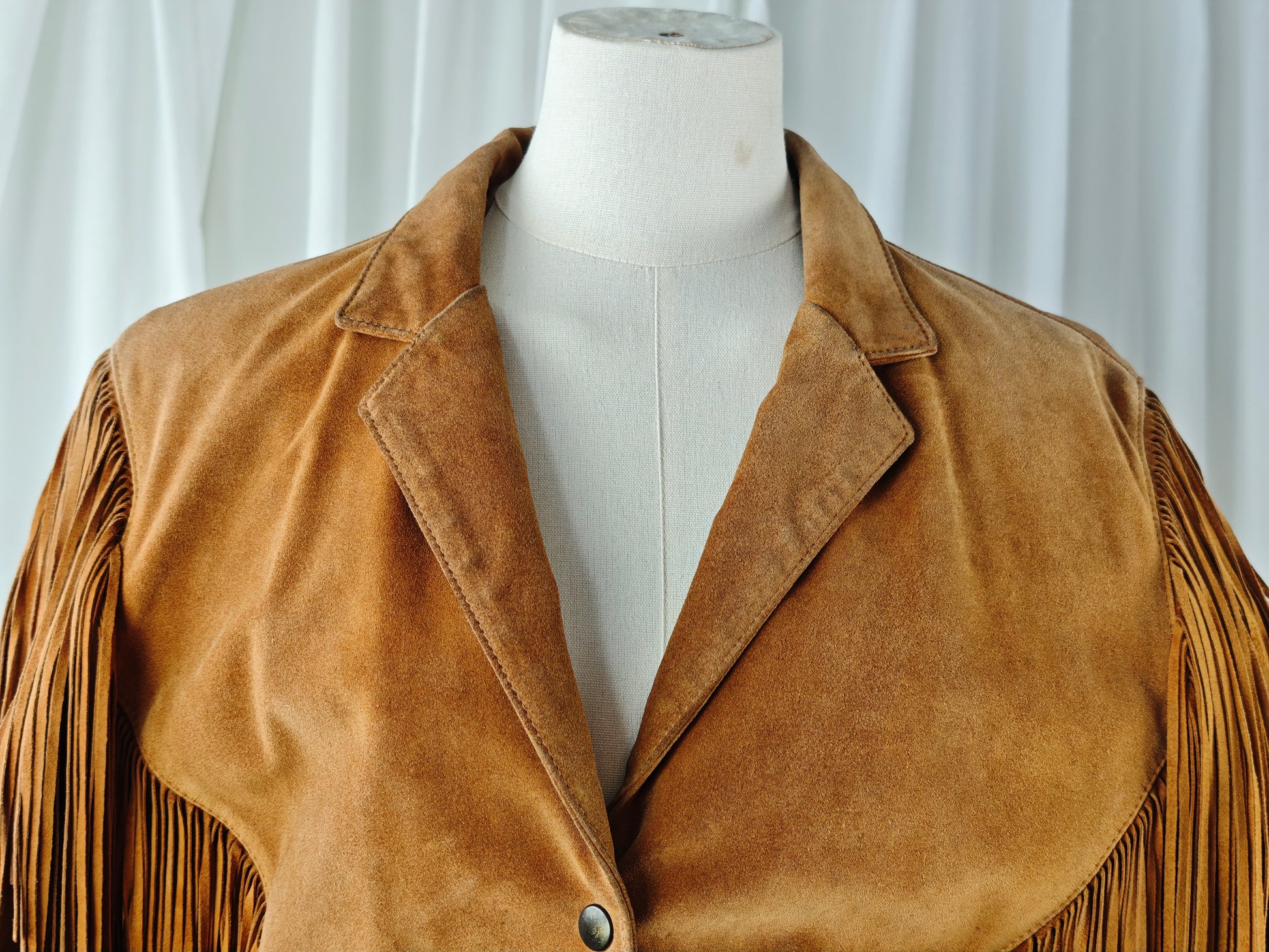 Vintage 1980's cropped fringe jacket the V-shape in the back creates a beautiful silhouette. Amazing condition but has some small signs of wear.