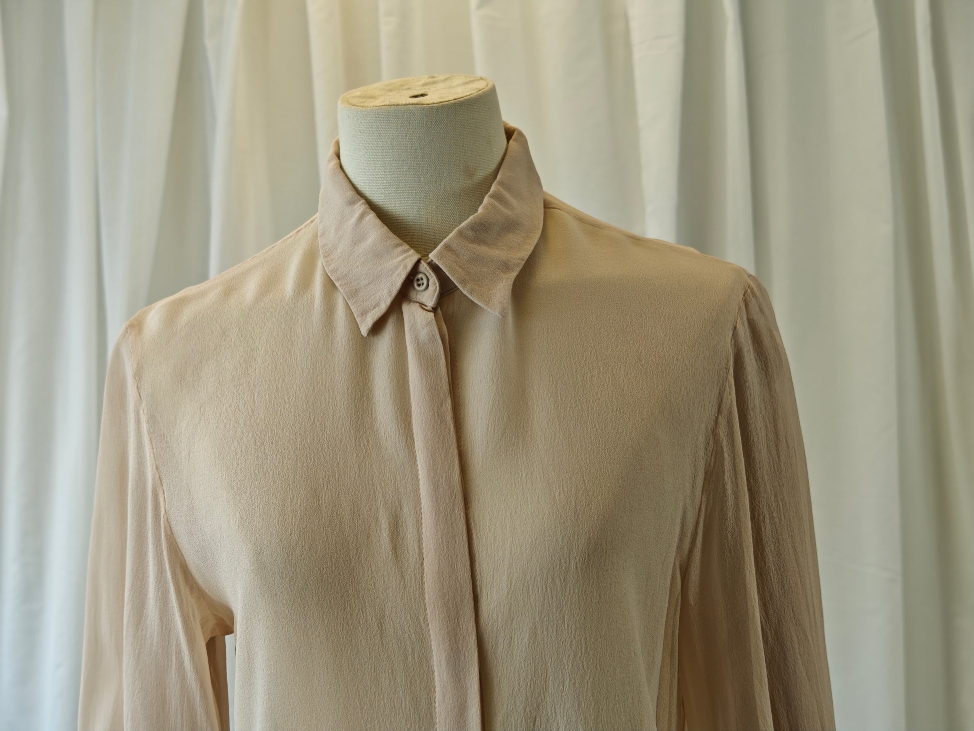 Soft pink sheer silk blouse by Max Mara Studio. Great condition but the fabric tag has been removed.