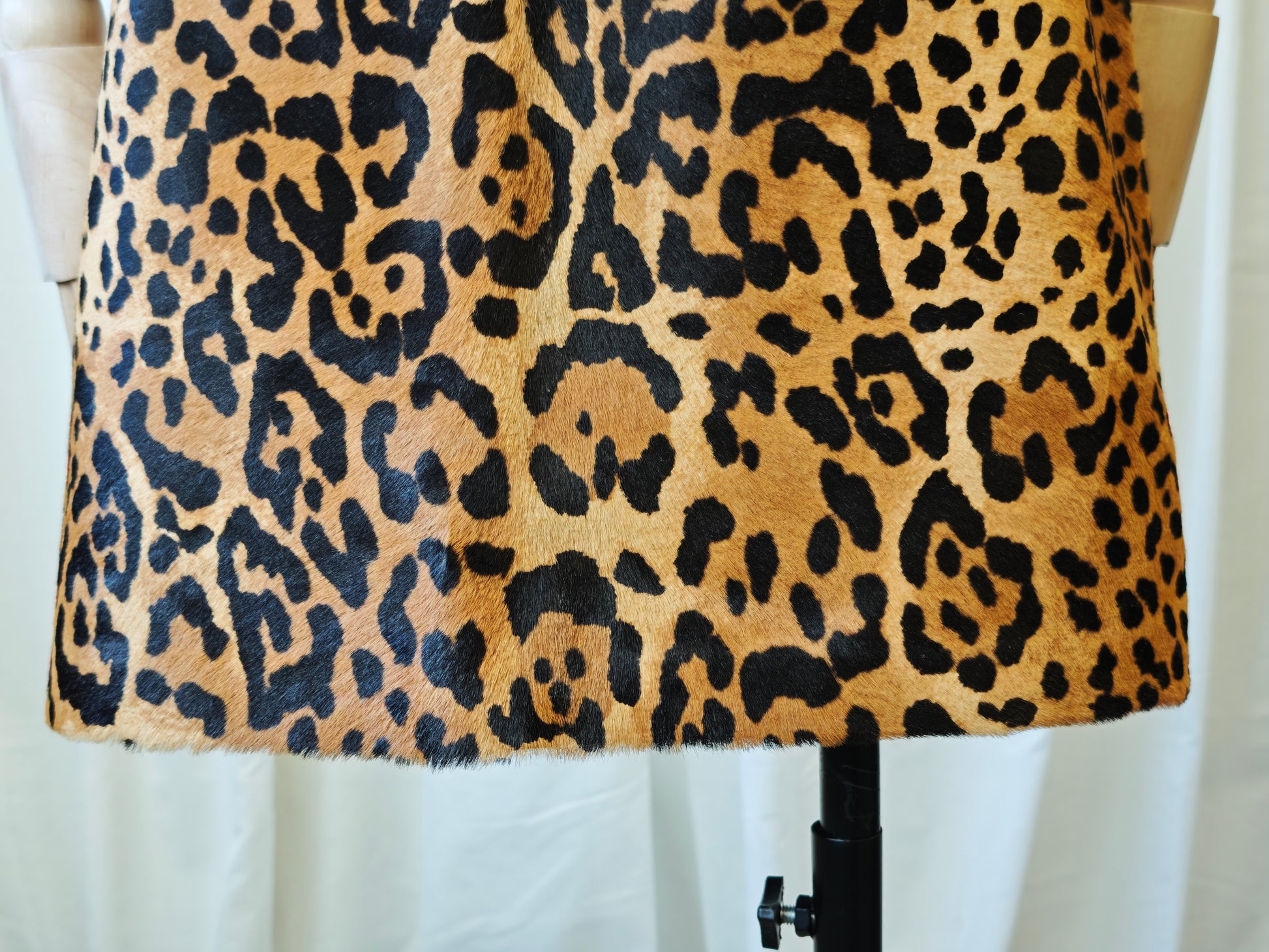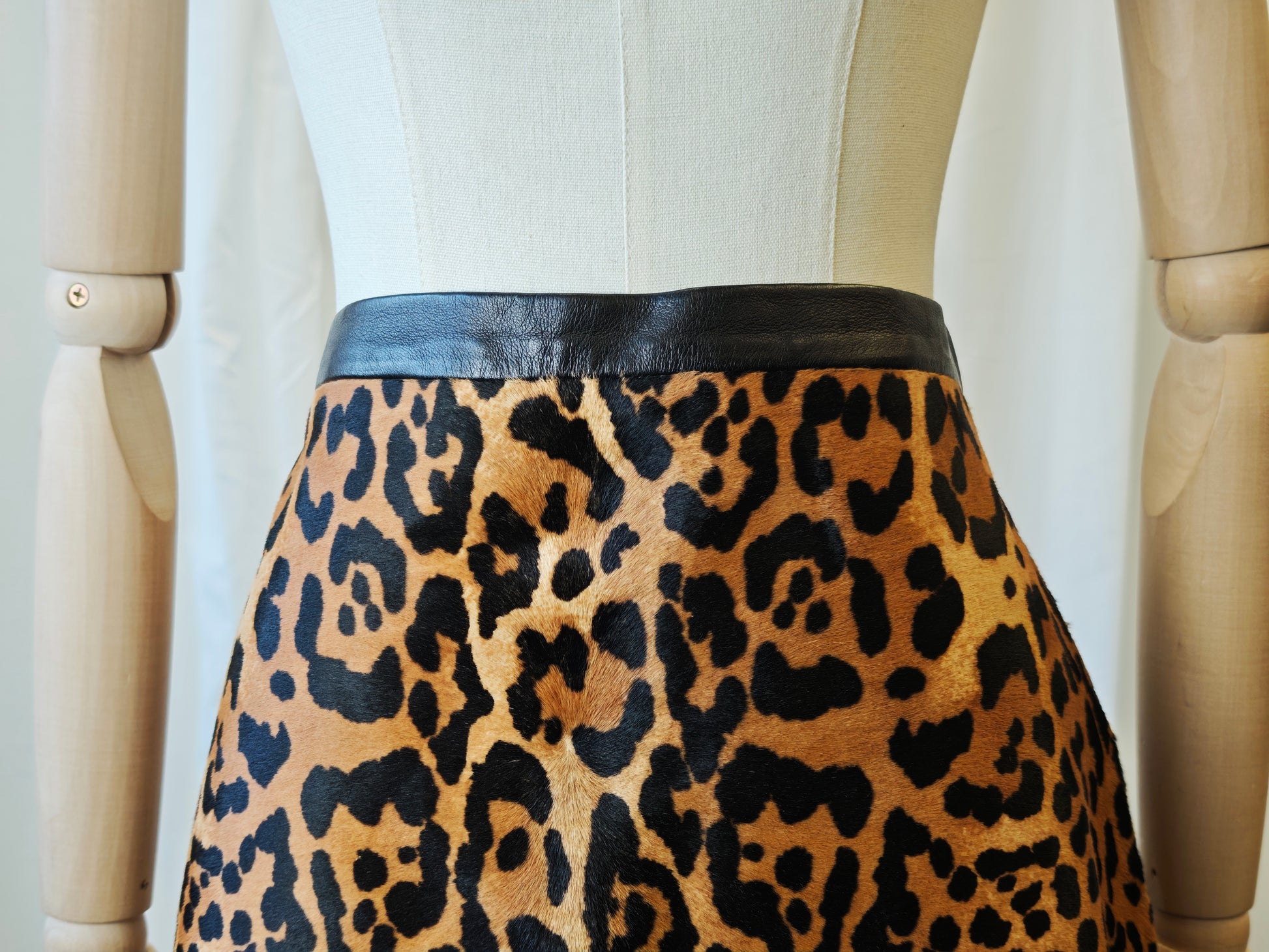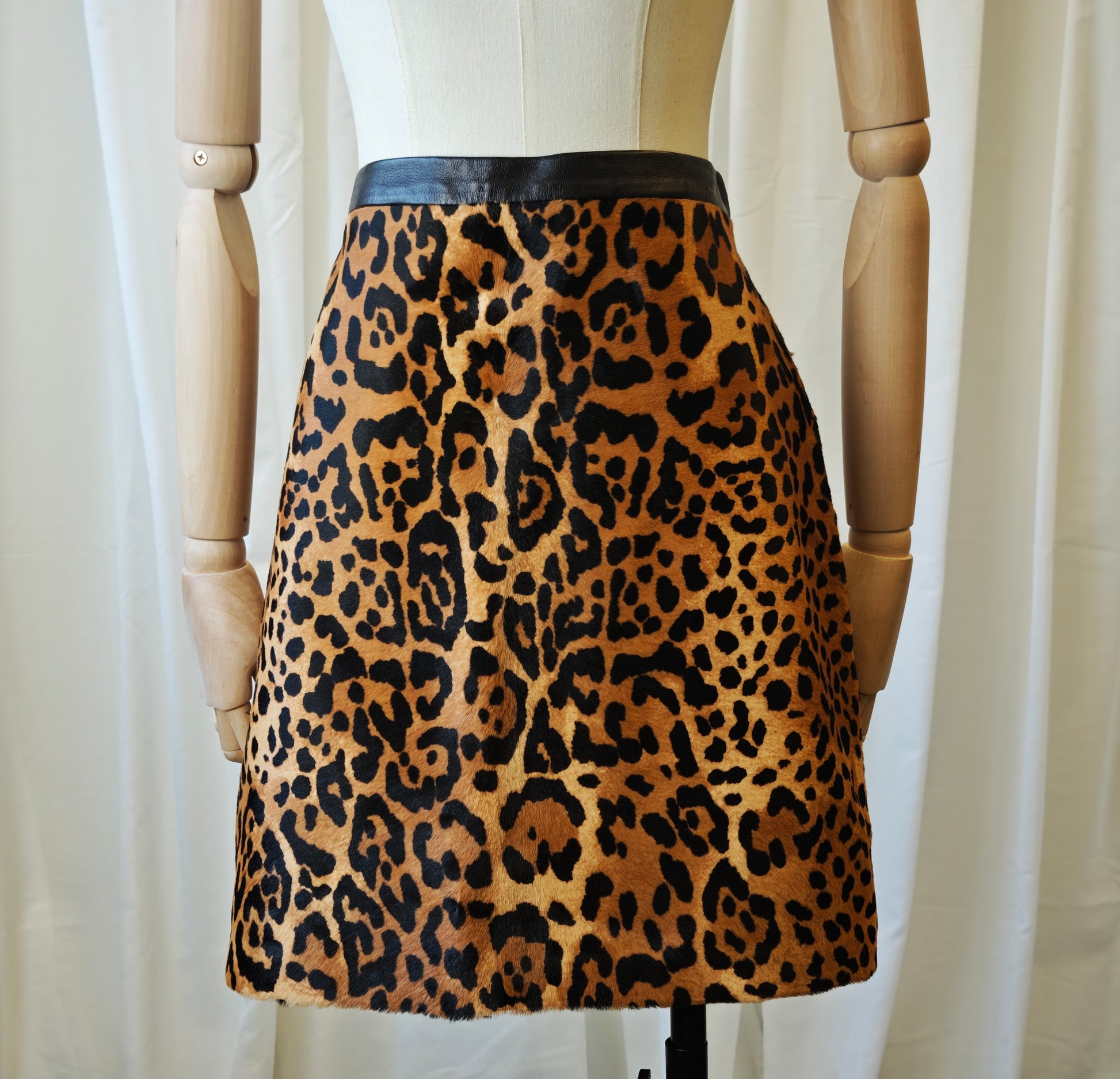 Ralph Lauren leopard print skirt made from real calf hair leather, incredible high quality garment. the skirt closes with a zipper on the side.