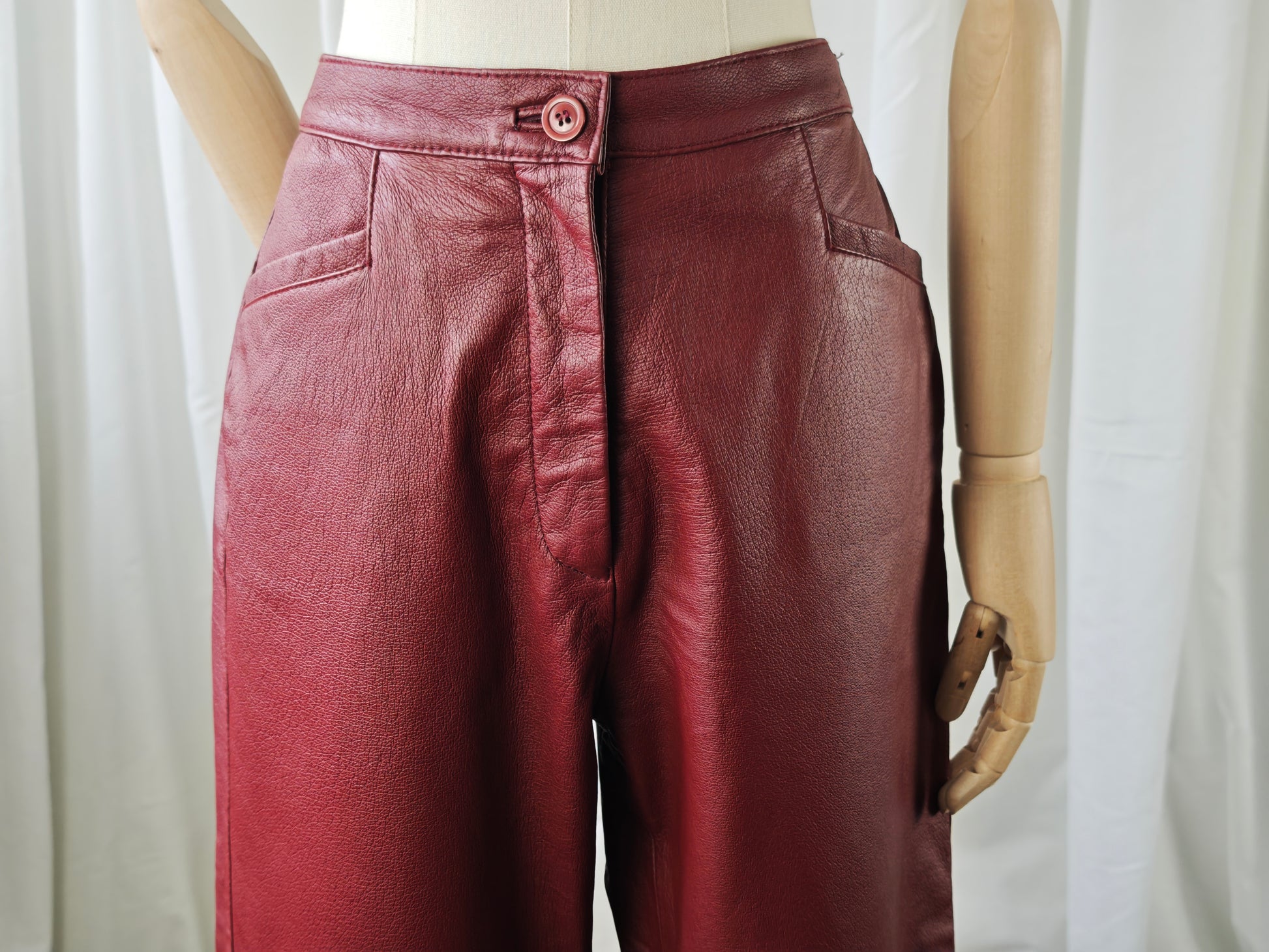 Vintage 90's burgundy flared leather trousers. This item is in like new condition.