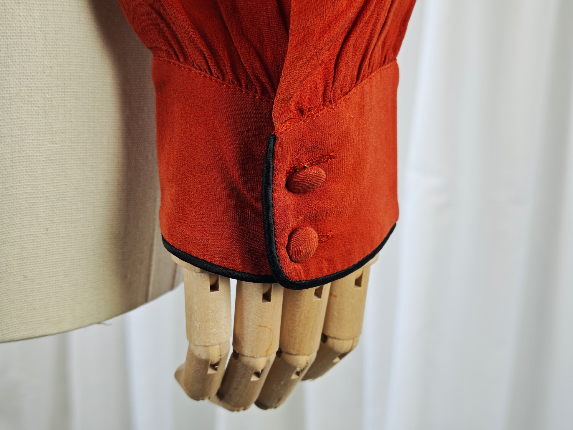 Brick Red silk blouse by Valentino, black trim details.